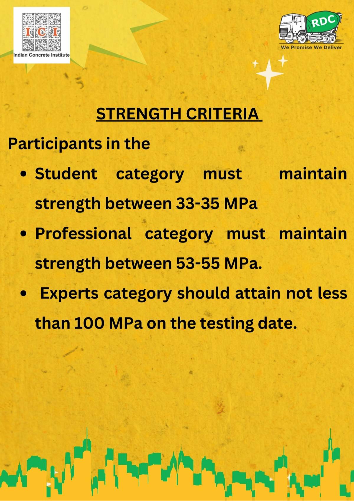 -Student Category: Cube strength surpassing 40 MPa or dropping below 30 MPa will be disqualified.