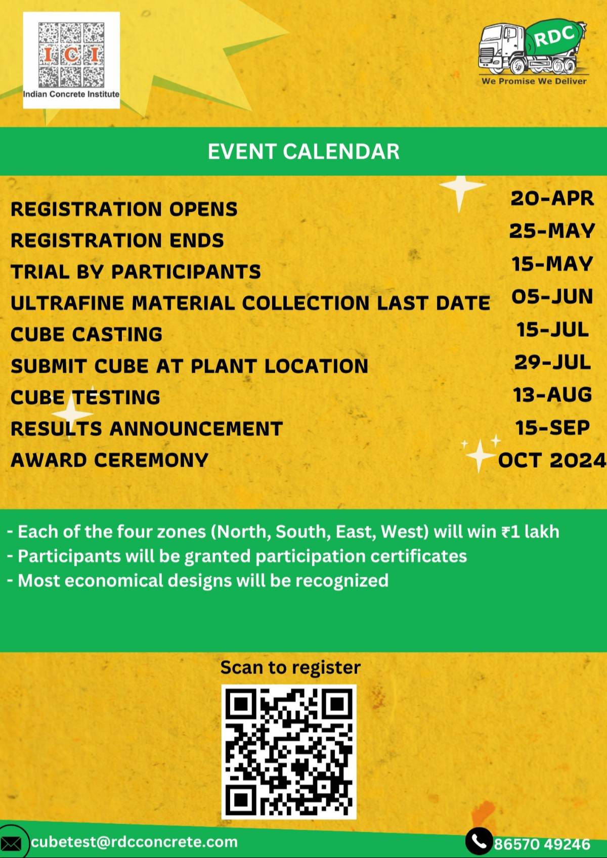 Calling all students and young engineers, as the ICI - RDC National Cube Test Competition season 2 is back! Dive into hands-on experience in mix design and concrete production. Let's shape the future of construction together! Whether you're a Student, Professional, or Expert & Professor, there's a category just for you. Register now for your shot at the 1 Lakh cash prize!